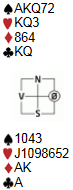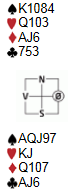 Som oppvarming til 4. divisjon får du nok ett spill å bryne deg på. Du og makker har klart å melde dere opp i 6 hjerter, til tross for at øst åpnet hele meldeforløpet med å sperreåpne i 3 ruter. Følgelig kommer ruter-7 ut fra vest. Dette er vel enkelt?