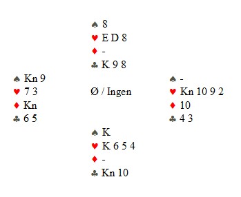 Dette spillet ser i utgangspunktet ikke så vanskelig ut, men du skal ha tunga rett i munnen for å vinne ti stikk. Det hadde Lise Blågestad. Lise sitter i syd og skal spille 4sp uten meldinger fra motparten. Vest finner et godt utspill med ruter til esset og mer ruter. Lise stjal, tok for ED i spar i bordet og ble ikke akkuat happy over 4-1 sitsen. Så kløver til damen og vests sitt ess. Han fortsatte med ruter og var nå lengst i trumf. Stillinger er: Kløver knekt og kløver ti fra hånda. Så to høye hjerter i bordet. Jeg gjør det oversiktlig for deg og viser posisjonen enda en gang: Kløver konge fra bordet og bort med hjerter seks. Vest må stjele. Ruter til dobbeltrenons gir stikk for trumf åtteren i bordet og kongen på hånda tar det siste. Spiller vest trumfen sin, vil hånda stå. Glimrende, Lise!! Landslaget neste?