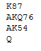 3. spillekveld i årets klubbmesterskap ble vunnet av Rolf Lassen Lersbryggen - Finn Løken med 661. På de neste plassene kom Frank de Kider - Steinar Hansen med 648 og Kjell Johansen - Karl Hojem med 601. Komplett resultatliste og spillestensiler og spillestensiler under linken http://bridge.no/var/ruter/html/0223/2014-01-20.htm Sammenlagt etter tre kvelder leder Rolf Lassen Lersbryggen leder med 1971, foran Jens H. Gundersen - Steinar Mydland med 1672 og Frank de Kinder - Steinar Hansen med 1628. Komplett sammenlagtliste under linken http://bridge.no/var/ruter/html/0223/2014-1klubbmesterskap.htm Vi gratulerer.