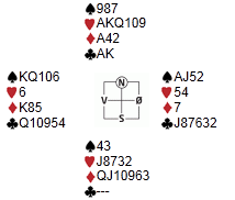4. (og siste) kveld av mars-turneringen ble vunnet av: Torleif & Espen med 60,4 %. Gratulerer! (Vi beklager at kortfilen ved en feil ikke kom med, så kortene kan ikke sees på nettet.)