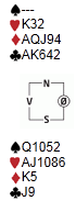 Videre i saken finner du hele fordelinga på spillet jeg la ut før Femund bridgefestival. Du skal spille 6 hjerter og får liten spar ut, hva gjør du?