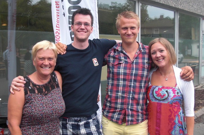 etter en superspurt. Det er noe som heter å ri på Monradbølgen og store seire i de siste rundene er alltid en god ide. :-) 20 og 15 på de to siste var akkurat nok til å ta seieren, knepent foran "To gamle og to gode" og "Hauge". Resultater og spillstensiler finner du i linken ope til høyre. Mariann Grude, Lars Arthur Johansen, Tor Eivind Grude og Tove Stoen.