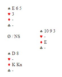 FLERE DAMER ENN PÅ MANGE ÅR Det er gledelig at damene også begynner å invadere de største turneringene. Å innvadere er vel kanskje ikke rett ord å bruke, men jeg kan ikke huske sist så mange som syv av 104 spillere er jenter. Aud Veseth ligger på en flott andreplass. Skal vi få damemedalje for første gang på lenge? FV: Rønnaug Asla, Pernille Lindaas, Astri Margrethe Grønnesby, Maja Rom Anjer, Torild Heskje, Anita Ower og Aud Veseth STILLINGEN ETTER DAG 1 ET SPILL MED MANGE SKVISMULIGHETER De fleste kom i 4hj i nord, men minst en spilte kontrakten fra syd og fikk kløver ut fra vest rett opp i ED. Det forsvant to ruter og elleve var sikret. Så hjerter konge, kløver til stjeling, ut med trumfen og en liten spar mot bordet. Øst stakk og nå lå kløver ti singel igjen i bordet. Det ble fristende for øst å ta for kløver knekt og fjerne bordets kløver 10. Det skulle han ikke gjort, for med fire kort igjen er dette stillingen: Jeg har fjernet vest sine kort fordi han er ikke med i spillet. På hjerter tre ser du sikkert at øst er ferdig. Det kom en analytiker inn til meg og sa at øst kan bryte denne skvisen ved å spille mer spar når han er inne på kongen! Javel, sa jeg, satte meg i nord og slapp sparen til esset. Nå tar jeg alle trumfene unntatt de to siste. Stillingen er: Jeg tar for den nest siste hjertern og øst er trumfskviset. Kaster han kløverknekten eller ruteresset, går det spar til damen og avkast av en spar på det godspilte kortet. Kaster han en spar, spiller jeg spar til damen og stjeler et minorkort. Spartassen gir det siste! STILLINGEN ETTER RUNDE 19 ALLAN LIVGÅRD TRAFF RUTEREN i dette spillet. Å få overstikk er jo det parturnering handler om og han spilte slik: Øst fant et greit utspill med hjerter fem. Allan vant med kongen, stjal en kløver, hjerter ess og hjerter 10 tok ut trumf. Så ruter til kongen (!), kløver ess og bort med den andre ruteren. Øst fikk to sparstikk til slutt. Et resultat i takhøyde. Jeg spurte Allan hvorfor han spilte til kongen og ikke tok kappen. "Sett deg i øst sitt sted og spill ut. Med ruter damen foran bordets femkort-farge, ville du ikke spilt ut aktivt? Når han startet med trumf, var det mye som tydet på at han hadde esset. Det jeg tenkte på, var om han kanskje hadde ED og at det likevel var rett å kappe. Det er også mye som tyder på at øst har sparkongen, siden han ikke startet der. Et argument for å kappe ruteren er at en kan gjøre seg uavhengig av sparfordelingen, men det er også skvisvarianter i sluttspillet bare jeg får beholdt overgangen i spar" DET ER KANSKJE DÅRLIG GJORT av meg å skrive om slike spill som det under, men hjerneblødende misforståelser er jo en del av bridgen? Jeg skal ikke en gang prøve meg på å fordele skyld, unntatt å si at det var Eide som meldte galt. PRISEN SOM FORSVANT? Terje Lie er en glimrende spillefører og når han traff sparen i dette spillet, gjorde jeg meg klar til å innstille han til prisen for beste spill.