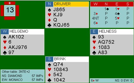 Jeg skriver ofte om norske slemmer. Dessverre er det ikke alltid med positive fortegn, men når jeg ser på Tor og Geir så virker alt så enkelt. De vant sin semifinale med 13 IMP. I disse to ruterslemmene vant Monaco det dobbelte da motparten var i 3NT på begge. Gakk så hjem og gjør likedan..
