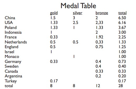 Jeg leser på andre nettsider at noen journalister for tiden gir i overkant lite applaus og skryt til norske internasjonale resultater. Det står ikke spesifikt nevnt denne sida, men jeg antar at jeg er en av dem som ikke er overvettes begeistret for tiden. Norge er et lite land på alle måter, sånn at det er i utgangspunktet ingenting som tilsier at vi år etter år skal dominerere bridge i verden. Vi har overprestert i en årrekke, men det skyldes at vi hadde flere gode spillere samtidig enn vi statistisk "burde" hatt. Nå er disse spredt på mange lag, Monaco - Schwartz - Hauge - Gillis, og det bærer resultatene preg av. Egentlig opplagt. Som en parallell. Vet dere at Norge er best i verden når det gjelder idrett generellt? Målt i forhold til antall innbyggere er vi det landet i verden som tar flest medaljer i internasjonale mesterskap. Vi mangler i en del store idretter som f.eks volleyball og basket, mens i f.eks sykling og alpint er vi "alt for gode". Kanskje noe å tenke på når vi klager over Høgmo sine resultater med fotball-landslaget? Christian Vennerød: Vi burde hatt enda dårligere resultater i bridge! Åpent VM var for meg resultatmessig en skuffelse, men det handler mer om høye forventninger. De beste norske spillerne i Kina var som sagt spredt på forskjellige lag og flere av dem hadde med sponsor som nok ikke holder nivået som skal til for å komme helt til topps. I sum tror jeg resultatene gjenspeiler det nivået norsk bridge er på pr. 2014. Tallene snakker for seg selv etter min mening. Det kanskje aller mest gledelige er at den beste prestasjonen stod "Norge junior" for. De kom som eneste norske lag (jeg ser i denne sammenhengen bort fra Monaco) til sluttspillet i lag. Det er sterkt!! (0,17 gull betyr at Tyrkia har hatt en spiller, 1/6, på et vinnende lag. De andre desimalene er beregnet på samme måte) Gledelig innledning i mixpar. Kristian Ellilngsen og Louise Nilsen var hele tiden med i toppen og 28.plass til slutt er mer enn godkjent. I denne turneringa hadde vi mange andre presumtivt sterkere par, men ingen av dem lyktes. I mixlag kom Hauge seg gjennom kvalifieringen, men tapte første kamp i KnockOut'en. Her hadde jeg også forhåpninger for flere av de norske lagene. Lag Salvo, med blant annet Zia, Sabine Auken og Roy Welland vant mixlag Hovedturneringa i mesterskap er lagturneringa. Denne gang ble det polsk seier mens Monaco (Zimmermann) tok nok en andreplass. Vi stilte med mange lag og som tidligere nevnt, svært gledelig av juniorene våre. De var gode i innledningen og tok seg greit til sluttspillet. Der ble det riktignok bare en kamp og lag Ventin var for sterke. Likevel lovende av Eide-Eide-Eide- Grude-Hegge-Ellingsen. Lag Mazurkiewicz vant Rosenblum Cup. I par dundret Norge av gårde i den innledende kvalifiseringa. Resultalista så mer ut som et norsk mesterskap, men fem blant de ti. Vi hadde derfor store forhåpninger til fortsettelsen, men for mange av dem ble det bråstopp i den 50 spills lange Semifinalen. To norske par var klar for den avsluttende finalen, pluss Thor Erik Hoftaniska i par med danske Dennis Bilde. I finalen kom Grøtheim - Tundal og Sælendsminde - Hauge dårlig ut, men de spilte seg godt opp etter hvert. Til slutt endte Glenn og Ulf på en godkjent 16.plass og Rune Hauge - Silla på 25.plass. Hoffa presterer fra det glimrende til det begredelilge resultatmessig. Denne gangen ble det helt i bånn når premiene skulle deles ut. Israel dominerer i 2014. Liran - Freidlander gikk til topps
