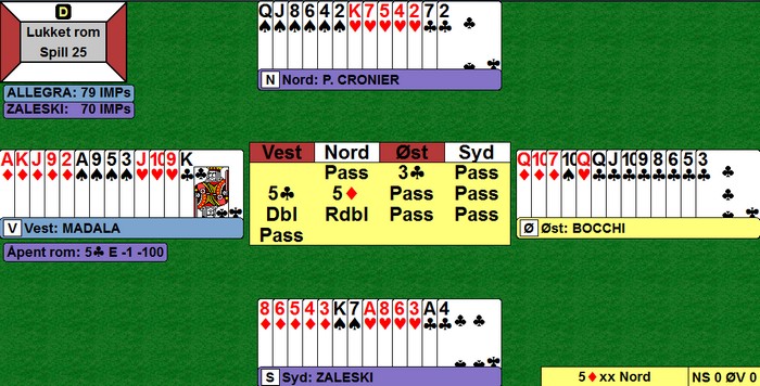 der damene fra Farsund gikk 4600 i beit. Denne er fra Champions Cup og jeg har fått den av Trond Are Nitter. Kontrakten kosta "bare" 3400. Når du spiller med sponsoren på laget, synes jeg Cronier kunne vært litt snillere. (selv om jeg skjønner poenget) Zaleksi er så vidt jeg vet en gammel mann og han kan jo få hjertestans når spillefører er renons i trumf første gang fargen spilles! Da tror jeg Cronier ville bli dømt, i alle fall for "melding med døden til følge"