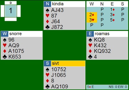 Jeg meldte 3NT i full fart uten å ta meg de nødvendige sekundene. Dette gjør vi alle og som regel blir vi ikke straffet. I slike spill skal vi oftest stoppe i 3NT, men det haster ikke å undersøke. 1ru benekter femkort major (Hauge-systemet). Jeg burde startet med 3ru for å vise hold der, så fortsetter makker med 3sp (hold i spar, men ikke i hjerter). Da kommer vi alle fall i 5kl, kanskje vi finner slemmen også. Det er for dumt å gå to sonebeiter i 3NT når det er 12 toppstikk i kløver. Torhild Heskje skapte spillet ved ikke å melde hjerteren sin på 1-trinnet, uten at jeg helt forstår hvorfor.