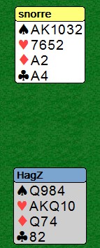 Jeg åpnet med 1sp i nord og nå kan noen fortelle meg hvordan vi skal havne i 6hj og ikke i 6sp? ___________________________________