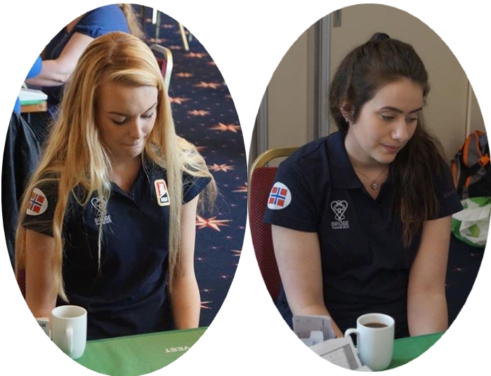 Jeg likte det jeg så i første kampen fra NM damer i Stjørdal. Der møttes damelandslaget (Brogeland - Svendsen - Vist - Holmøy) og juniorlandslaget (Klingen Haugen - Hauge - Ekren - Indrebø). I tillegg til juniorene selv, er det Sven Olai Høyland som i første rekke skal ha æren for framskrittene de unge jentene har gjort og det var spennende å se hvor nærme seniorene de er. Jeg er sikker på at det var en spent coach som fulgte laget "sitt". Sven Olai ber meg understreke at det er mange andre som også skal ha sin del av skryten. Thea Hauge og Marte Haugen Klingen tapte knepent damelandslaget i første kamp.