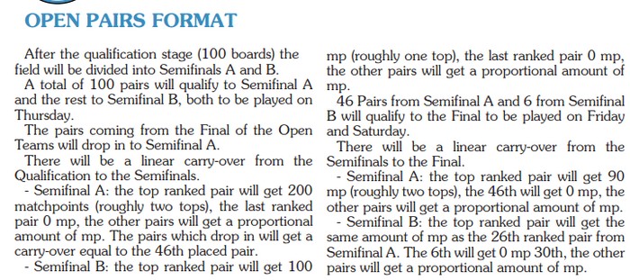 Åpen klasse: 100 par i Semifinale A. Resten til B. Jeg er ikke 100% sikker, men leser reglene slik at finalistene fra lag er inkludert i disse 100. De som tapte semifinalen, vet jeg ikke hva skjer med.