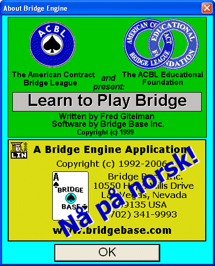 "Lær å spille bridge" er den norske utgaven av "Learn to play bridge" utviklet av Fred Gitelman, hovedmannen bak nettstedet Bridgebase Online. Programmet er pakket i .zip og .rar - velg ikon under for å laste ned ønsket versjon.