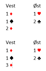Det er neppe spar makker ønsker, og den andre fargen hans må være kløver - så da er det vel der du bør begynne?