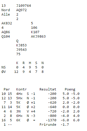 I runde 5 møttes to av parene som kjempet om klubbmestertittelen 2016, da Tor og Christian Bakke møtte Erik Eriksen og Finn Fyllingslid. Det skulle bli en fartsfylt runde.