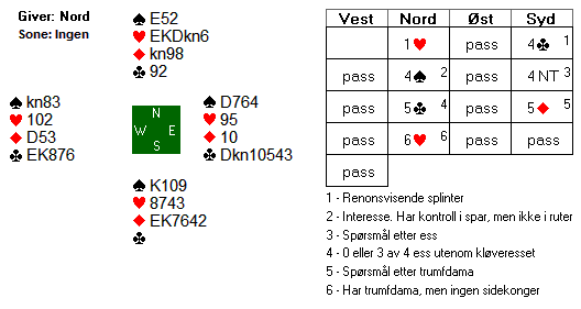 Ved å melde 4 spar får du vist at makkers renons passer og at du har sparkontroll, men ikke ruterkontroll.