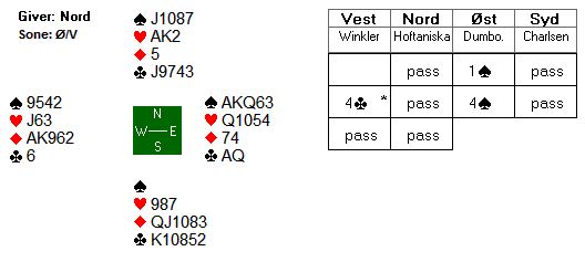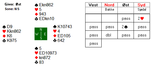 Spar dame stakk Christian med esset og tok med det forsvarets femte stikk. Fortsatt måtte han få to stikk til for sin gjenværende trumfbeholdning kn862.