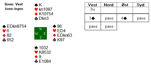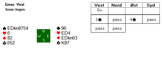 Uansett var hovedpoenget med å ta opp spillet å finne ut hva som er beste spilleplan. Hvordan planlegger du spilleføringa i 4 spar etter hjerter knekt ut fra nord?