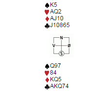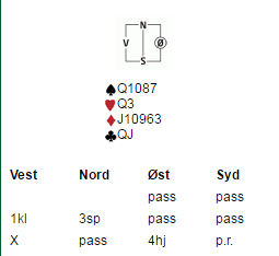 På mandagens klubbspilling satt jeg syd og skulle spille ut etter følgende meldingsforløp: