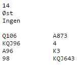 Her kan du prøve deg på 3NT i Øst.