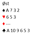 Og det er uten at det tas i betraktning at makkeren til den som har kortene allerede har vist minst fem spar og åpningshånd. Idet man vet det kan disse kortene være ganske enorme. Det skal faktisk lite til for at 6 eller 7 spar står selv med vanlige åpningshender hos makkeren, og det kort han aldri i livet vil gå videre med over 4 spar. Du kan konstruere noen passende hender selv, som for eksempel om Ø/V sine kort ser slik ut: