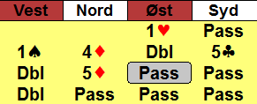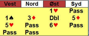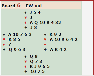 På femtrinnet valgte Demuy å gjøre det enkelt, han støttet makkerens hjerterfarge. Hurd mente slem var sannsynlig og la på til 6 hjerter. Meldingsforløpet gikk litt annerledes ved det andre bordet da nord hoppet helt til 4 ruter og Zia la inn en kryptisk 5 kløvermelding. Da Klukowski valgte å doble og doble igjen fikk amerikanerne spille 5 ruter doblet. Det kostet bare 500 mot soneutgang, men det kunne likevel blitt tapsspill om Hurd ikke fant hjertervarianten og gikk bet i 6 hjerter. Han la ned hjerter ess først, og da han tok finessen over syd etter at knekten falt hos nord var det +1430 til notering. Det ga vinnerlaget hele 14 IMP. Kampen ble til slutt vunnet av Zia sitt lag med 13 IMP!