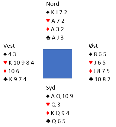 På ruter dame måtte vest enten kaste kløver eller hjerter, og fra nord kastes motsatt. De tre siste tas med ett ess og to stikk i den andre fargen. Å notere +720 berget spillet selv om slem kunne vinnes, det ga 62% mens 3 grand med tolv ville gitt kun ca. 40%.