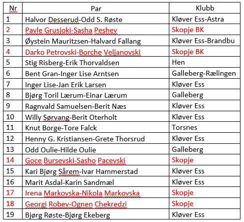 Striden mellom Makedonia og Albania berørte ikke Kløver Ess, tvert imot, den albanske bridge-presidenten Kapo, vår kontaktperson fra et tidligere arrangement i Albania, formidlet kontakten mellom Kløver Ess og Skopje BKs formann Pavle Grujoski slik at vi kunne invitere lokale spillere til vår turnering. Dette var veldig hyggelige folk som vi kom godt overens med og de ga oss hard kamp om «medaljene» uten at det påvirket det vennskapelige forholdet.