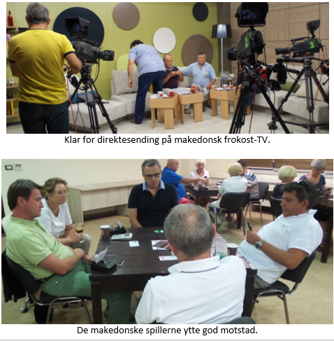 Selv om Skopje er en millionby, har bridgeklubben der et beskjedent medlemstall så formannen ønsket å benytte vår tilstedeværelse til å promotere bridge. Resultatet ble en 20 minutters direktesending på makedonsk riks-TV, der bridge og turisme var hovedinnholdet.