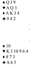 Vi sakser et spill fra bulletinen. Det er skrevet av en av mine favorittskribenter, Eddie Kantar, og denne gangen er kanskje ikke spillet så vanskelig? Prøv deg selv som syd: