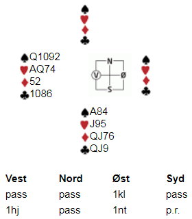 Meldinger: 1 kl- 1 hj/ 1 sp- 2 NT/ 3 NT-p.