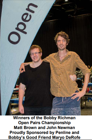 De fleste vil vel si det er svært hyggelig når unge spillere kommer opp og setter oss «gamlingene» på plass. I den første hovedturneringen, Bobby Richman Pairs (regnet som det australske parmesterskapet) var det to veldig unge spillere som vant.