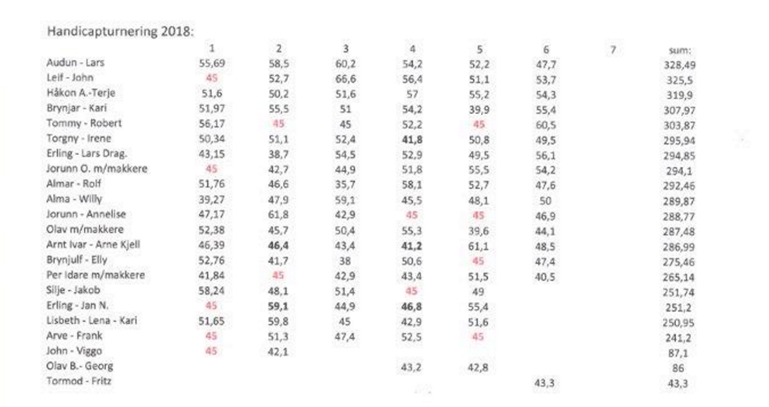 Resultat med handikapberegning mandag den 07.05.18.