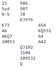 Den riktige måten å spille er for en så kallet "compound squeeze". Ru må fremdeles holdes av S, ellers fungerer ikke skvisen, men det spiller ingen rolle hvordan Kl sitter. Etter de første 3 Hj, spiller man for denne posisjonen: