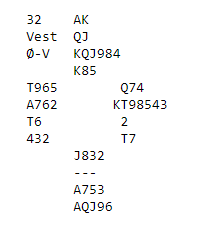 Hvis du ikke var med å spille dette spillet i går kveld kan du jo diskutere N/S-kortene med din faste makker. HVordan melde seg frem til 7 ruter (eller 7 kløver) med styring?