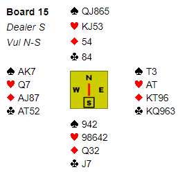 Alt i alt et interessant spill i kløverslem, men et mye enklere spill i ruterslem.