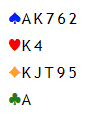 Men 5 grand som storeslemsinvitt vil ikke hjelpe i det spillet vi her har sett på, for her er nord ute etter tredjekontroll i ruter, dobbelton (Ax) eller damen.