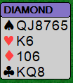 Spillefører hadde nå ingen problemer med å godspille ruter dame og senere få kastet en hjerter hos vest på ruter ess, overgang til øst i trumf.