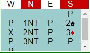 Uten å ha fått sjekket det tror jeg syds 2 spar viser at han har en dårlig dobbelton. Det ga vest sjansen for å doble for utspill.