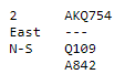De som doblet først følte seg kanskje litt mer forpliktet til å melde 4 spar andre gangen. Men det må da være temmelig risikabelt å melde nå? Makker behøver ikke ha noe i spar i det hele tatt. 4 hjerter behøver således ikke stå en gang, og 4 spar kan godt bli veldig dyrt i disse soneforholdene. En vanlig meldesituasjon, egentlig, det er farlig å melde, men farlig å passe også! Personlig mener jeg pass oftere er riktig i denne situasjonen, men det behøver jo ikke være riktig i praksis.