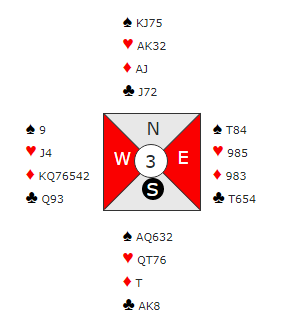 I helgen kom mot slutten et instruktivt spill som hadde å gjøre med å velge riktig utgangskontrakt, men deretter også om å finne den riktige spilleplanen og rekkefølgen kortene spilles i hvis den beste utgangen finnes. Den beste planen øker veldig sjansene for å vinne utgangen.