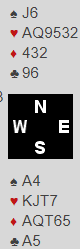 Da viser det seg at vest startet med knekten fjerde. Dermed vet du at en vellykket sparfinessen ikke behøves likevel - hvis du ser sluttspillet. Du har sikkert spill selv om det sitter som det gjorde i forrige uke, slik: