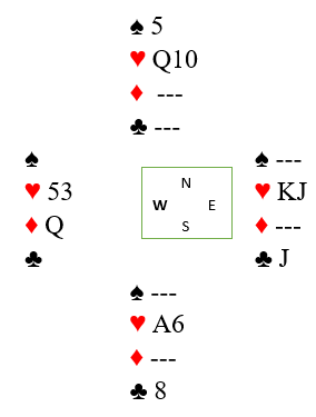 For å få til det må en motspiller ha hjerter konge samt at han må være alene om holdet i kløver (ha minst fem slik at han andre ikke kan stoppe spillefører fra å få stikk på den fjerde kløveren), eller ha både hjerter konge og ruter dame. Men slik kortene er her må hjerteren være overgang til den siden hvor truslene er og (syd) i sluttposisjonen, og derfor kan ikke hjerter ess tas tidlig. Vest kan derfor ikke skvises begge skvistruslene er hos syd, han kaster bak syd, så spillefører må håpe øst har for mye å passe på.