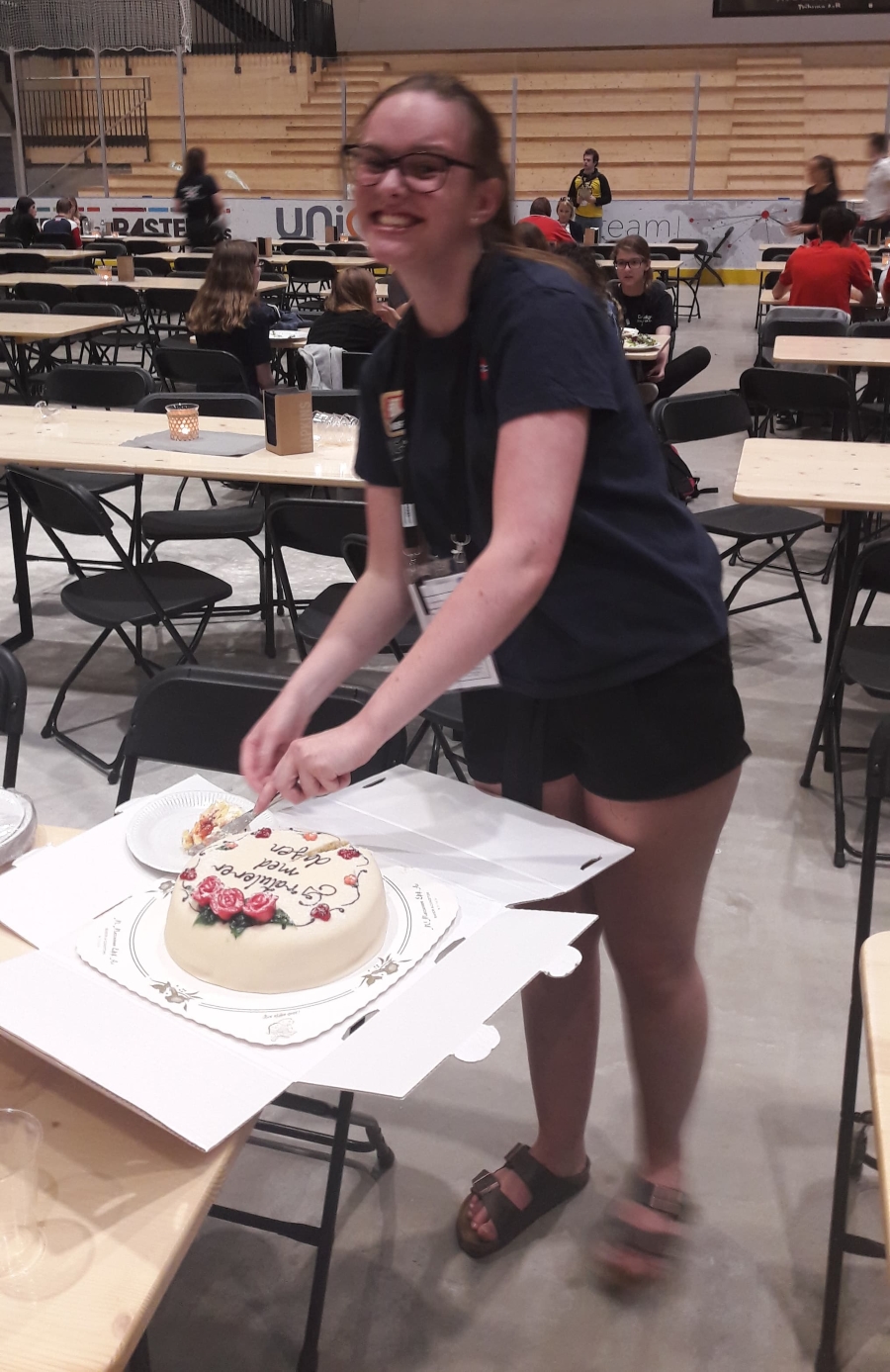 Agnethe Hansen Kjensli på det norske jentelaget hadde bursdag i går. Hva er vel bedre enn å tilbringe dagen ved bridgebordet, og sågar i i Ungdoms-EM? Bursdagsbarnet ble feiret med kake etter middagen onsdag kveld.