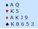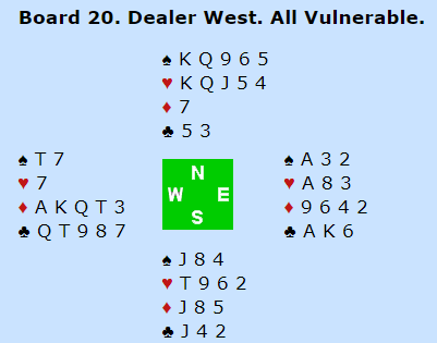 Jeg mener 2NT er korrekt (eller den meldingen som vil vise 20-21 grand) og ganske opplagt åpningsmelding. Noen vil kanskje heller åpne med 1 kløver. Da blir det kanskje mulig å finne en fin delkontrakt i kløver, men det er denne gangen. Min anbefaling er heller å åpne med NT (vise hvilket grandintervall du har) en gang for ofte enn en gang for lite med denne typen hender. I det lange løp vil det lønne seg. Det er veldig ofte godt å få fortalt om styrken med det samme hvis kortene er sånn noenlunde en grandhånd.