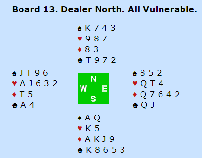 Dette er selvsagt ikke enkelt å vite i meldingene. Og om øst hadde hatt «feil» fordeling i majorfargene (fire spar og to hjerter) ville det ikke vært mulig å vinne tretten stikk.