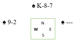Men om syd kommer inn er det verre, gjennomspill av nieren er ubehagelig. Kanskje tenkte spilleren også på at spar 4 var den minste sparen som er ute, og om de spiller etter «vanlige» motspillsregler så sitter fort sparfargen 4-4 fra start (de fleste spiller den minste tilbake fra opprinnelig fire kort, norske fra gjenværende). Gjør sparen det får uansett ikke forsvaret mer enn to sparstikk og to ruterstikk, men om sparen sitter 4-4 spiller det ingen rolle hva vest gjør. Og om han tenkte på at syds spar 4 var den minste sparen som var igjen syd skulle vest selvsagt lagt liten fra hånden. For da må jo nord stikke over fireren, han har ikke mindre spar! Vest blir sittende igjen med A-9 som en fet dobbelstopper med nord inne, omtrent som om vest hadde A-Q og nord var inne!