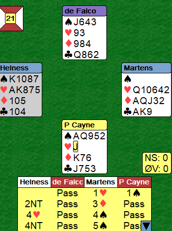 Merk at også Verbeek gikk innpå med 3 kløver med øst sine kort!
