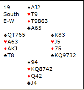 Syd åpnet med svake 2 hjerter og Lie (vest) meldte inn 2 spar. Bakke (øst) flippet mellom bare å løfte til 3 spar eller vise en god-løft til 3 spar med 3 hjerter, såkalt cueraise, Han valgte det siste, og da hoppet Lie til utgangen 4 spar.