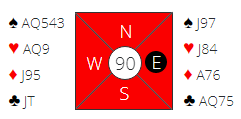 Jeg synes det spesielt i parturnering er en god sjanse å ta rett og slett å løfte 1 grand til 3 grand med denne vest-hånden.