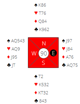 Her var det «korrekte» valget ruter 9 i første stikk tingen. Nord måtte på med honnør og esset vant med esset. Om spillefører så etablerer sparfargen og senere tar alle finesser som kan tas blir det elleve stikk og en fet pluss-score, +67 av 93 mulige.