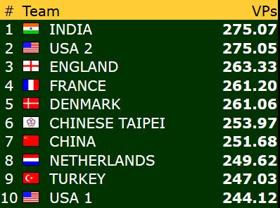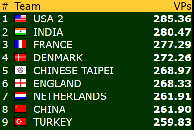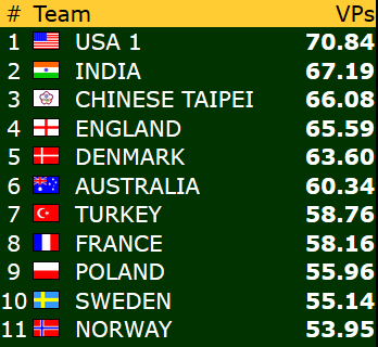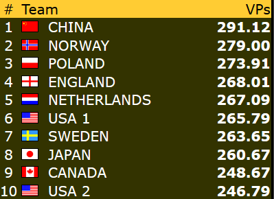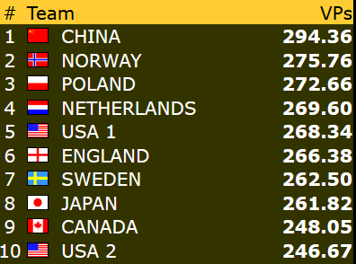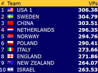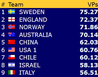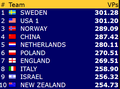 Dette betyr at Norge er videre til kvartfinale i både åpen klase og dameklassen allerede før siste runde! Gratulerer!
